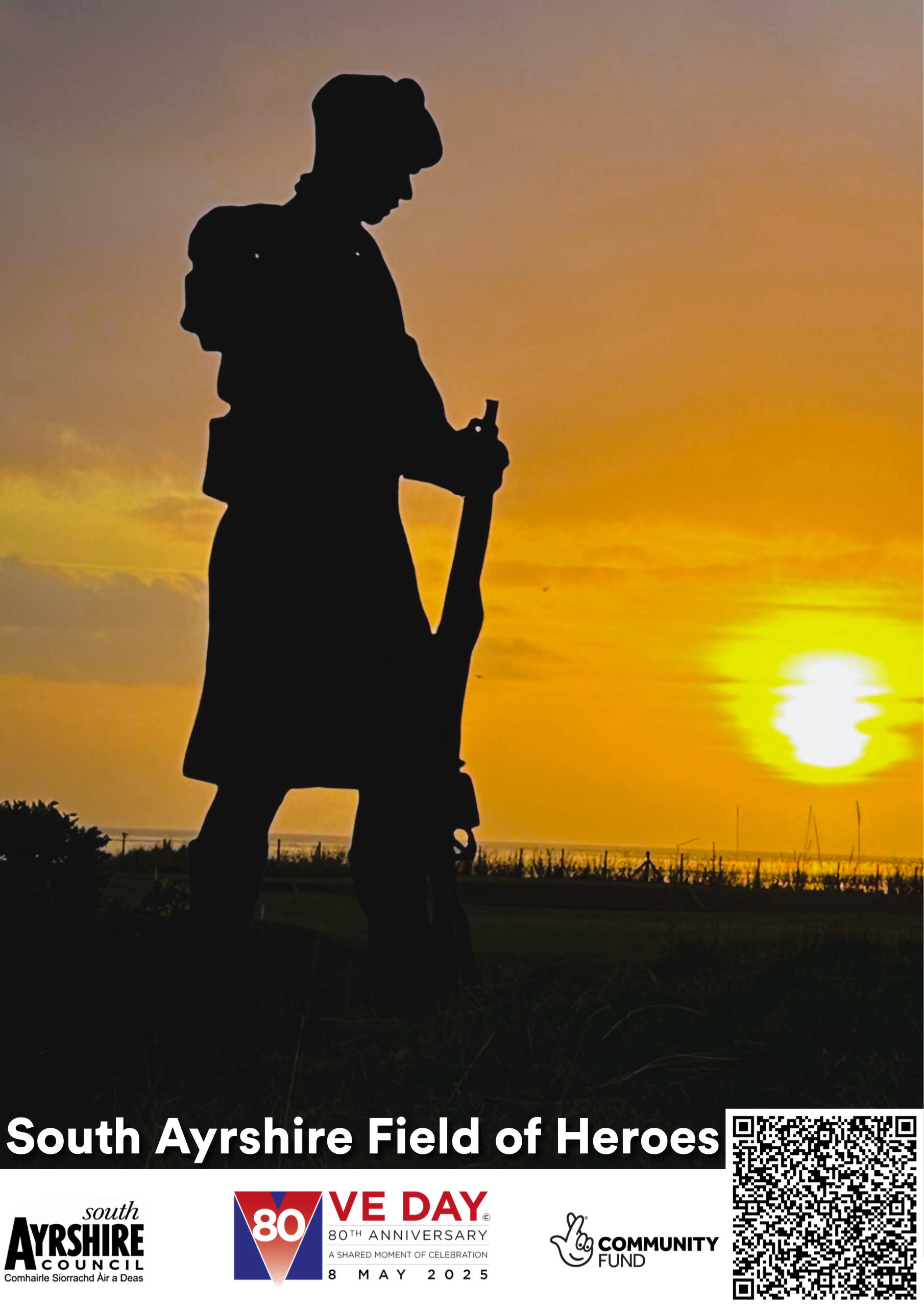The South Ayrshire Field of Heroes was a temporary art installation created by VE80 South Ayrshire to commemorate the 80th anniversary of VE Day. The installation featured 120 silhouettes of military figures, each representing a local person from South Ayrshire who died in World War II, and was displayed in Ayr's Wellington Square in May 2025. The main exhibition took place in Wellington Square, Ayr, from May 1st to 10th, 2025.Produced by John McBlain, each silhouette was connected to the personal story of a fallen individual from the area. Visitors could scan a QR code on their phone to watch a short video about that person's service and sacrifice, with each story told in the first person.Alongside the first person stories, visitors could access the App to see photo galleries dedicated and related to each individual person whose story was told.Over 100 stories were recorded for this massive production, with John singlehandedly managing, coordinating and producing all aspects of audio and video content creation.The Field of Heroes was part of the larger VE80 South Ayrshire project, which included other events like a service of celebration, beacon lighting, community activities, and a schools competition.